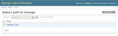Нажмите “Polls”. Вы попали на страницу “списка объектов” для
