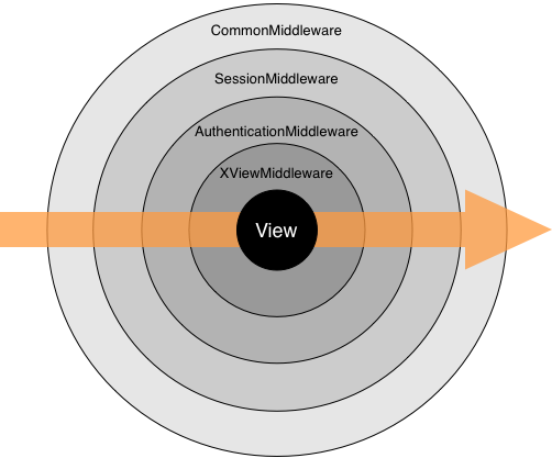 During the request phases (process_request() and process_view() middleware), Django applies middleware in the order it’s defined in MIDDLEWARE_CLASSES, top-down. During the response phases (process_response() and process_exception() middleware), the classes are applied in reverse order, from the bottom up. You can think of it like an onion: each middleware class is a “layer” that wraps the view: